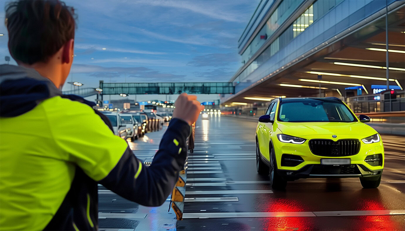 Il vous assiste avec vos bagages et réalise un état des lieux avant de conduire votre voiture dans notre parking extérieur sécurisé, situé à seulement quelques minutes de l’aéroport.